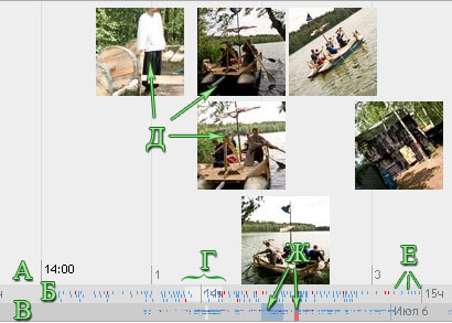 Перемещаться по шкале времени Фотолетописи можно несколькими способами: